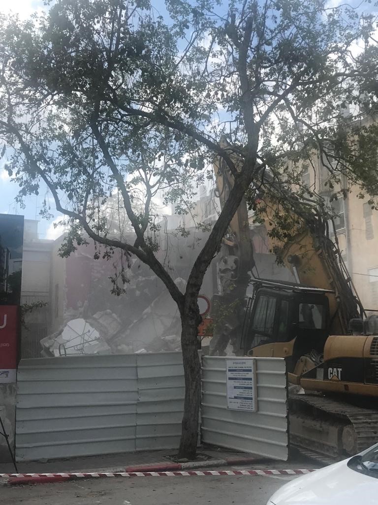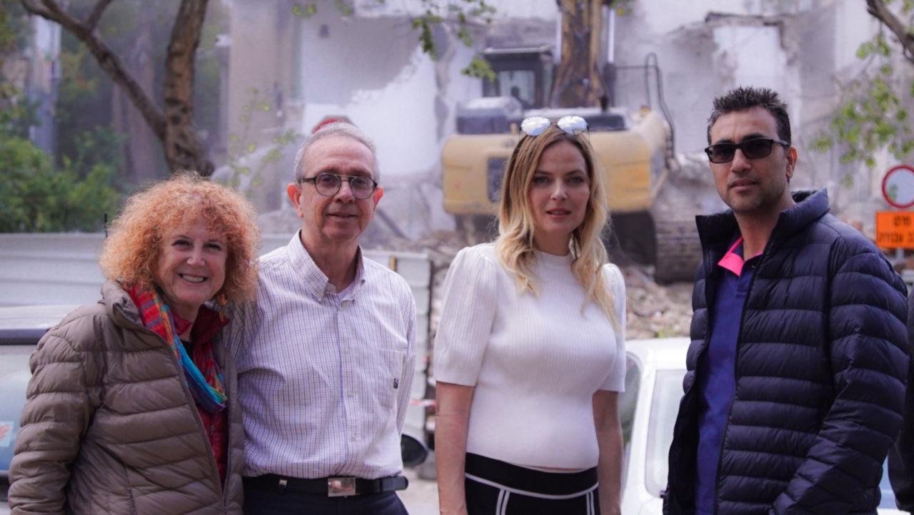 בתמונות: הריסת הבניין ותיעוד היזמים בשטח, מימין לשמאל: מאיר פנדגיר (ארביב-פנדגיר), קרן מוכתרי (KM פרויקטים) ושאול בר (אשבר)